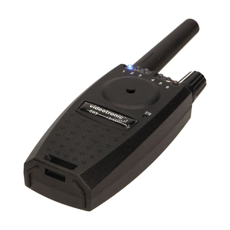 . zamontowany nadajnik umożliwia współpracę bezprzewodową z centralką Videotronic CX3 – zasięg odbioru uzależniony jest od warunków geodezyjnych i przeszkód znajdujących się w zasięgu sygnalizatora, zatem może się wahać od 40 do 300 m.